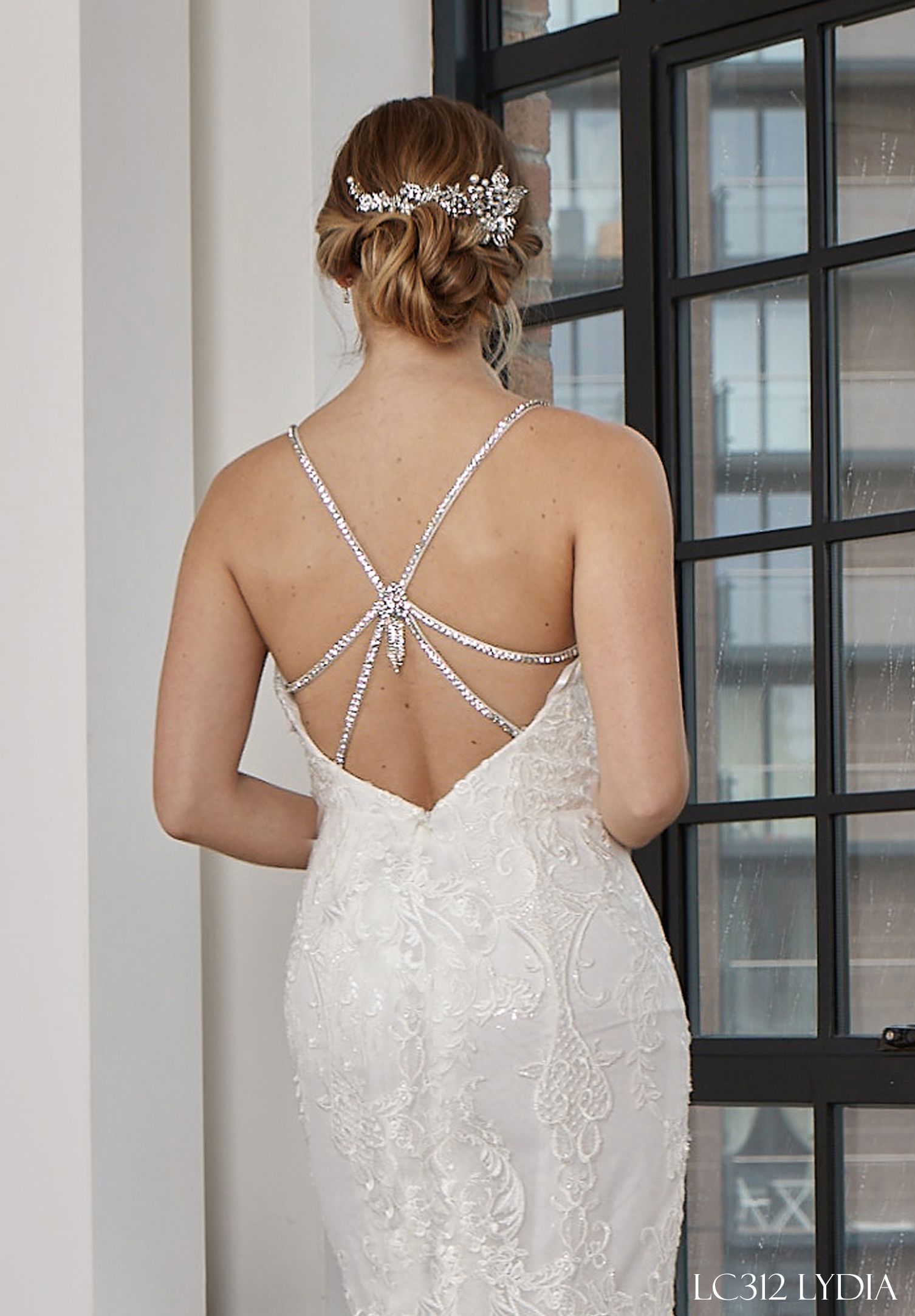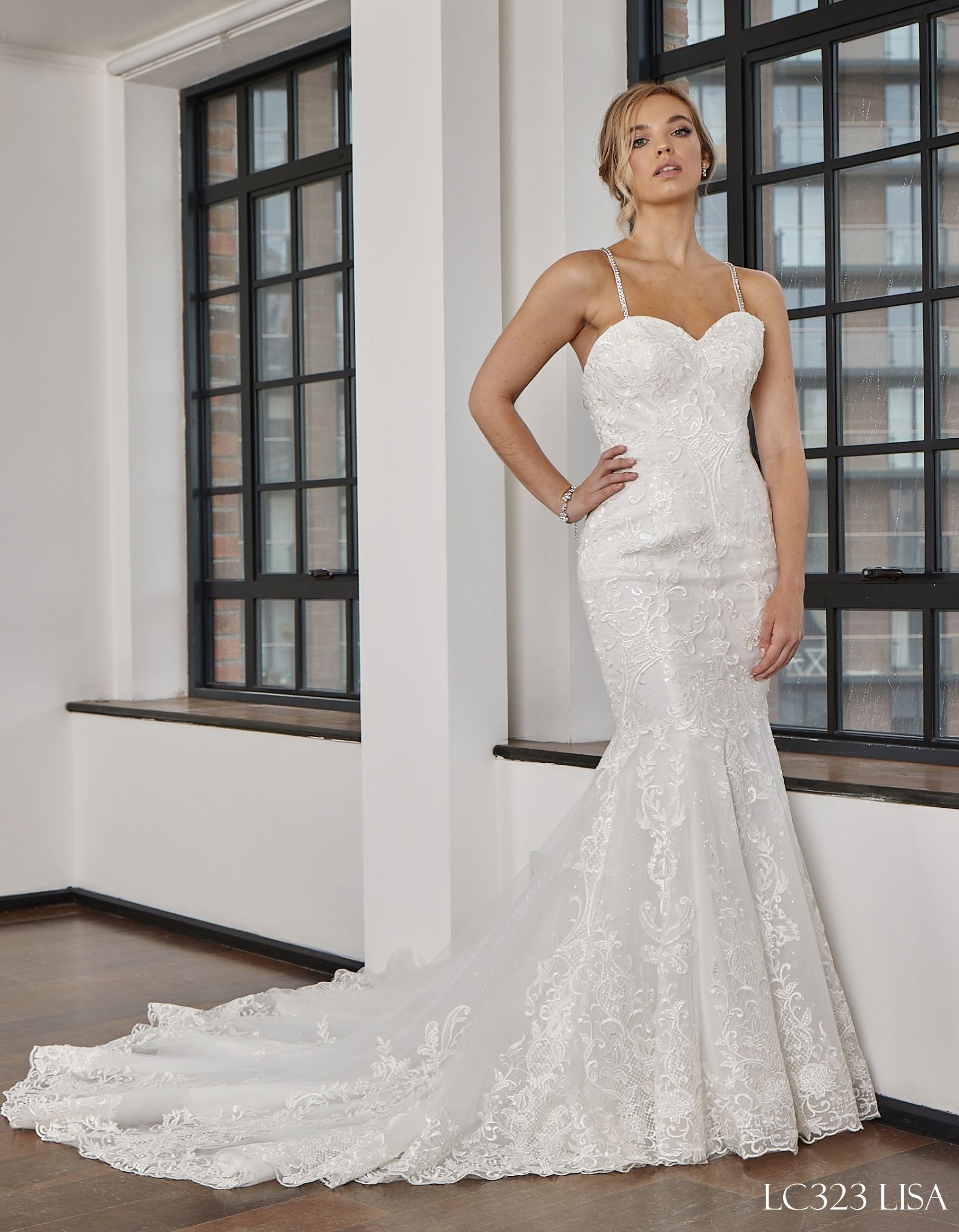 Lisa- ID -LC323 is a fitted mermaid style, she is really gorgeous and modern for a smaller and medium size bride who loves a lace dress. She is specially created for a bride who likes a sweetheart neckline and a low back, with the added security of chain straps which can be easily removed if preferred. This exciting dress is created to make the bride who is wearing it look her best, walking down the aisle on that big day.