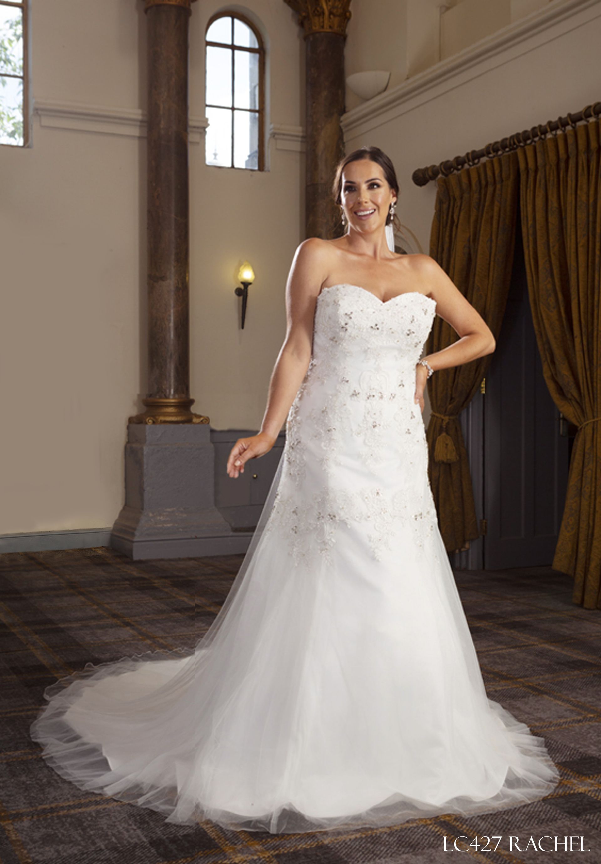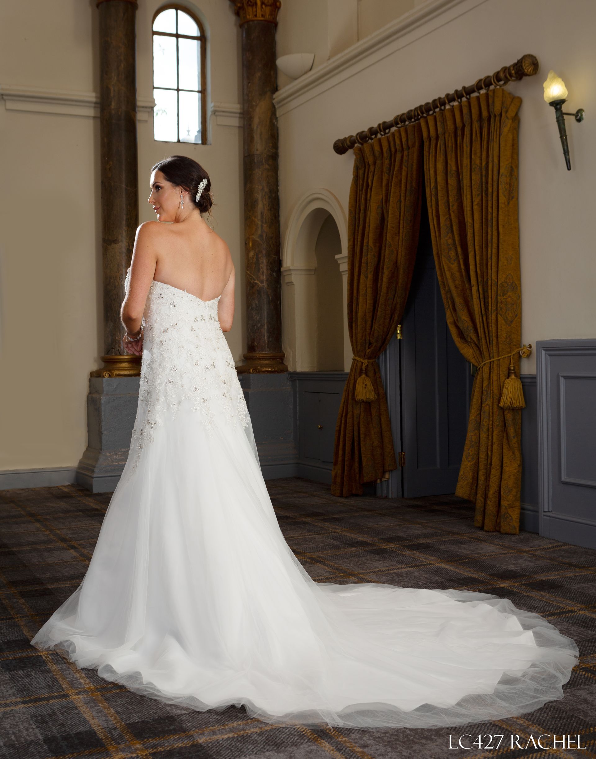 Rachel's dress is a sweetheart strapless A-line style, simple, beautiful and elegant.